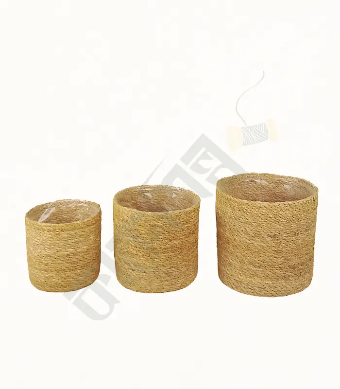Natural Seagrass with Dyed Jute Planter Pot with Handle